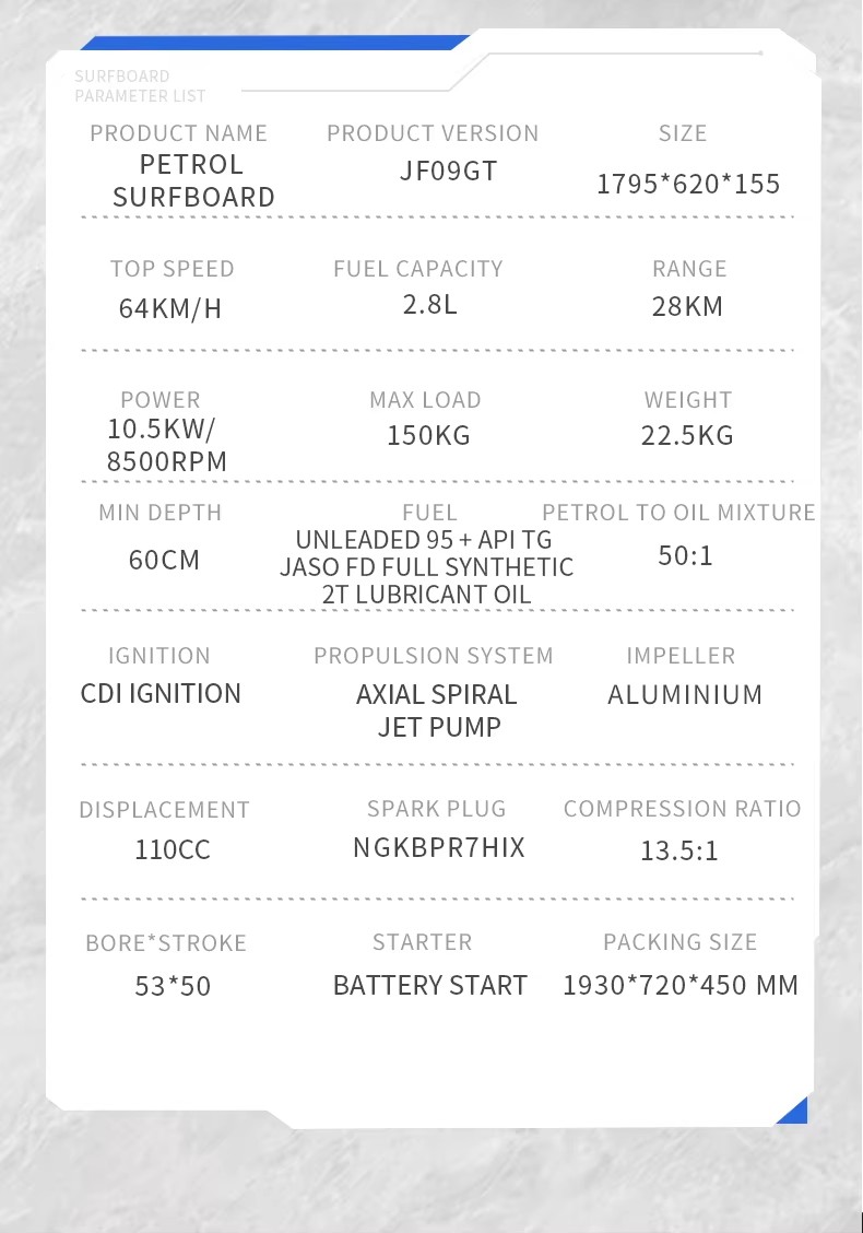 JetFly 09GT 110CC 10.5KW Gas Surfboard